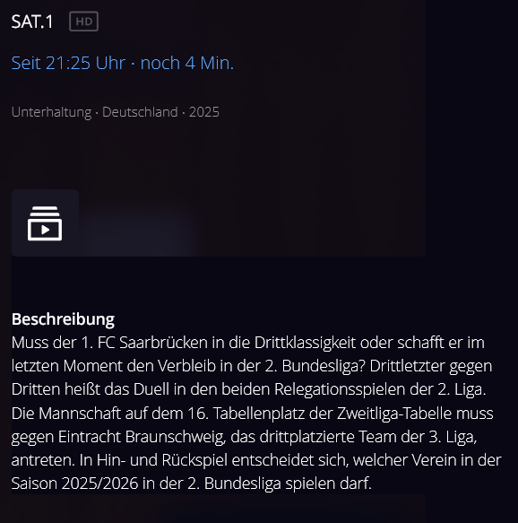Da ist aber die geballte Kompetenz am Werke. Das ist die EPG Anzeige aus dem Relegationsspiel Saarbrücken vs Braunschweig