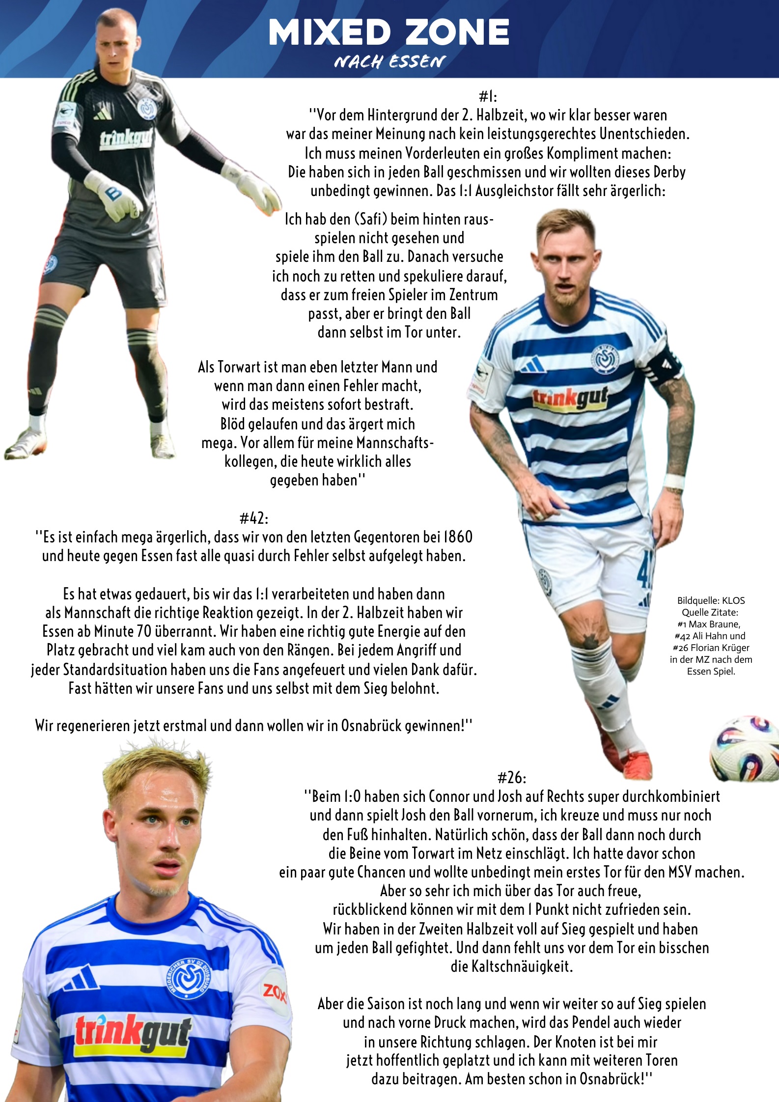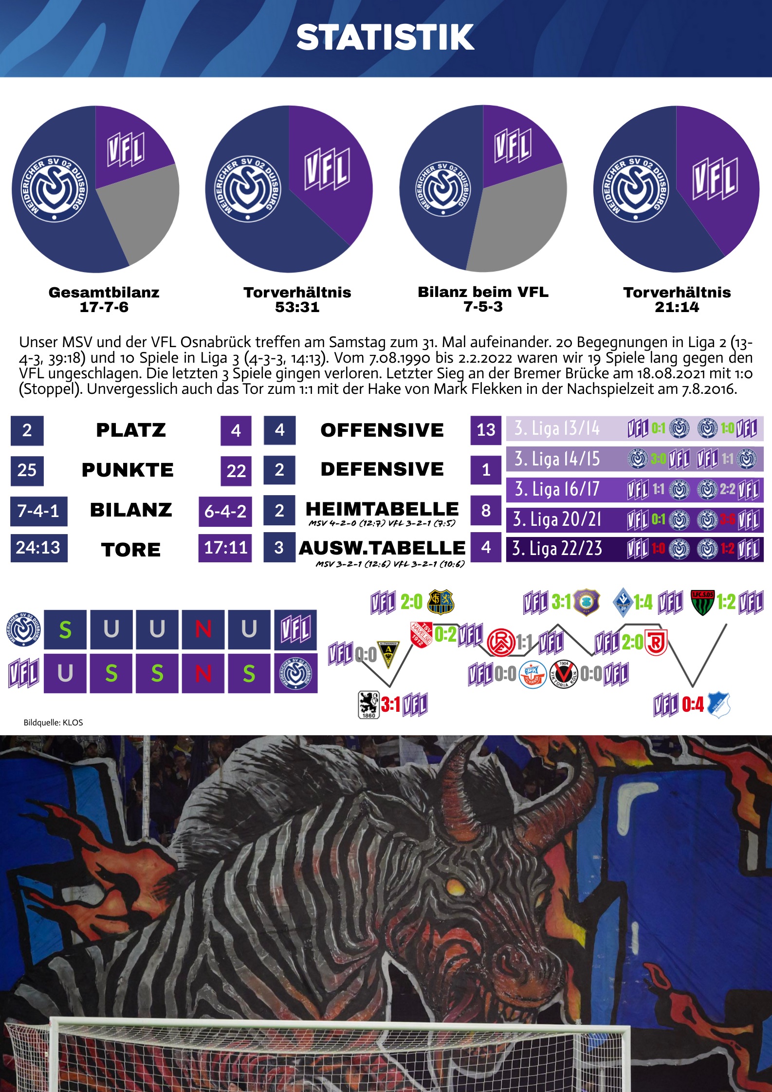 Mit dem Suhlen in der Opferrolle und dem permanenten Herbeireden einer "Feindschaft" zum VFL Osnabrück machen wir uns als MSV in meinen Augen unnötig klein. Ich hoffe, das ist bald mal vorbei.
