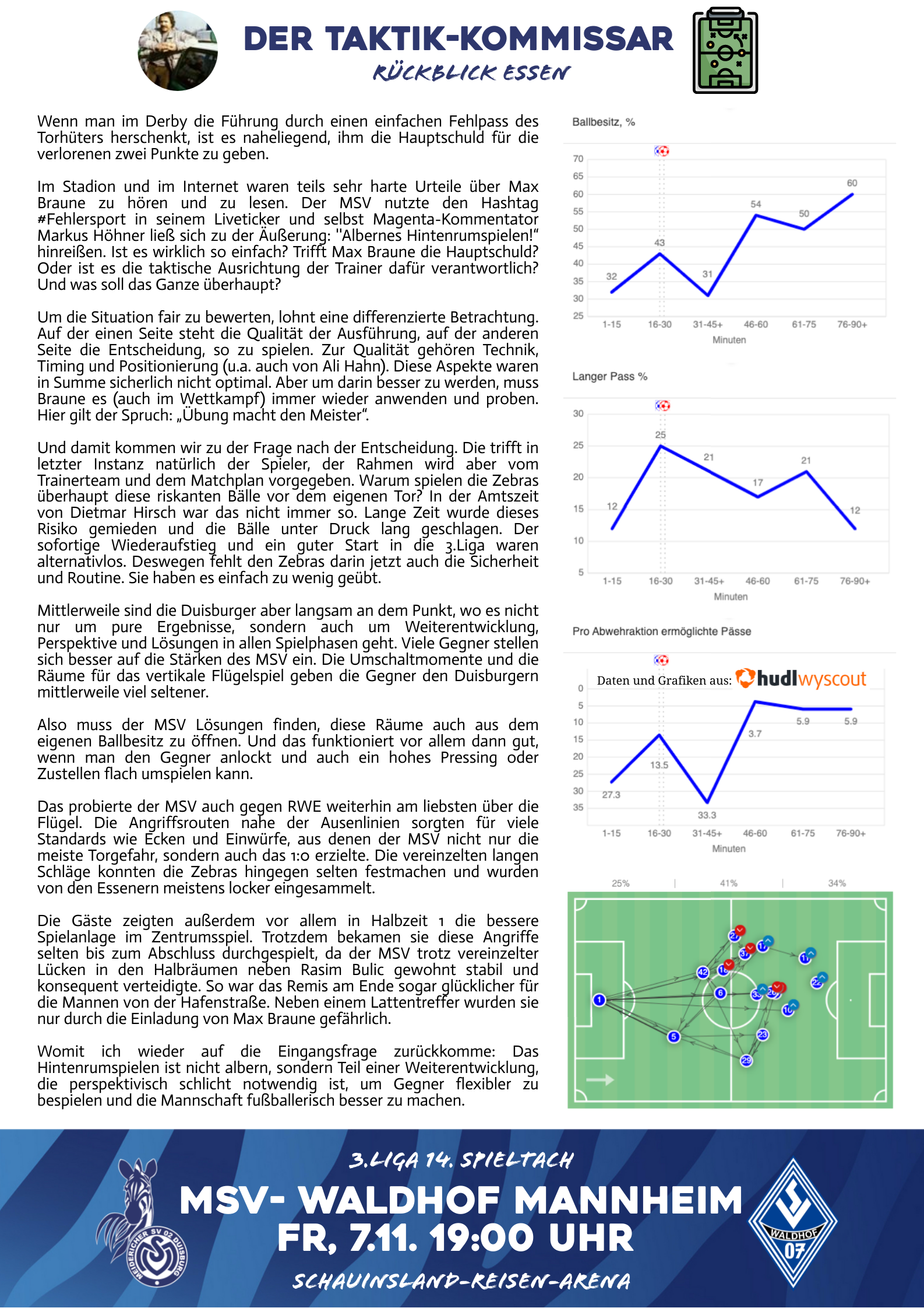 Auswärts bei einer Mannschaft die zurzeit einen starken Lauf hat, wird richtig schwer da was zu holen, aber ist nicht unmöglich! Vor allem wissen wir aber nach dem Spiel in welche Richtung es wohl eher geht, bei einer möglichen Niederlage sind es dann 5 Punkte aus 5 Spielen, bei einem Sieg für uns lebt der Traum weiter, ein Unentschieden wäre ein Punkt mehr gegen den Abstieg. Keine Ahnung wieso, ich glaube wir gewinnen das Ding! Nur der MSV!