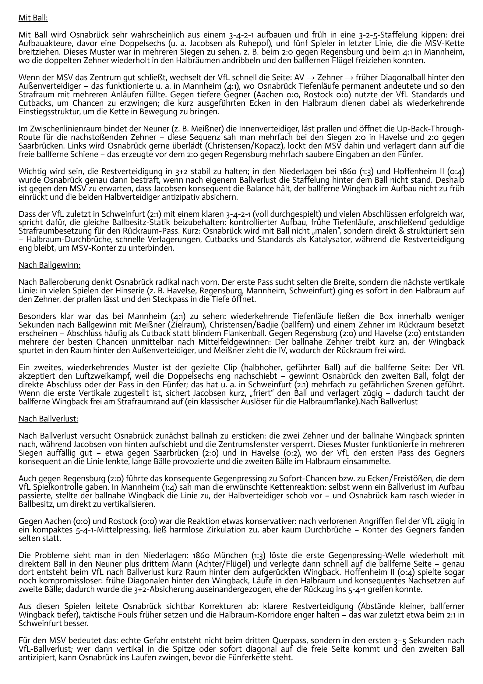 Wird grundsätzlich ein richtig schweres Spiel, aber ich sag ganz ehrlich: Da müssen mal wieder drei Punkte her. Osnabrück hat sich richtig gut entwickelt. Bei aller Antipathie – die haben keinen schlechten Coach und eine gute Mannschaft beisammen. Dennoch gibt es Ausreißer, wie zuletzt gegen Hoffenheim. Kommt am Ende auch ein bisschen auf die Tagesform der Osnabrücker an – und natürlich auf unsere.