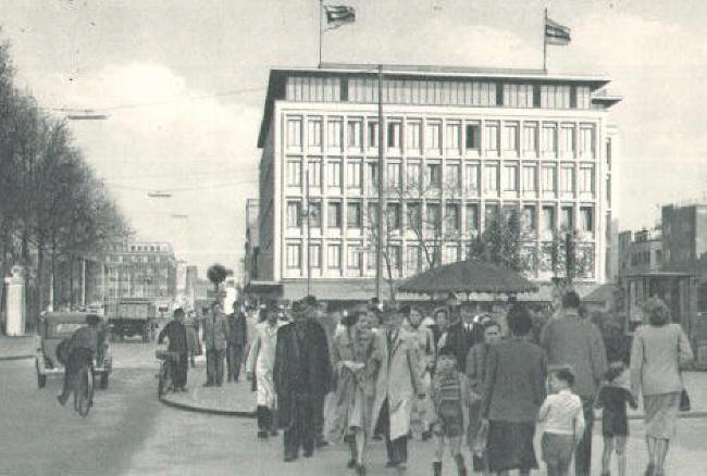Zu sehen ist die Jägerstrasse.Im Metropol Theater ist heute ein Elektrogeschäft.