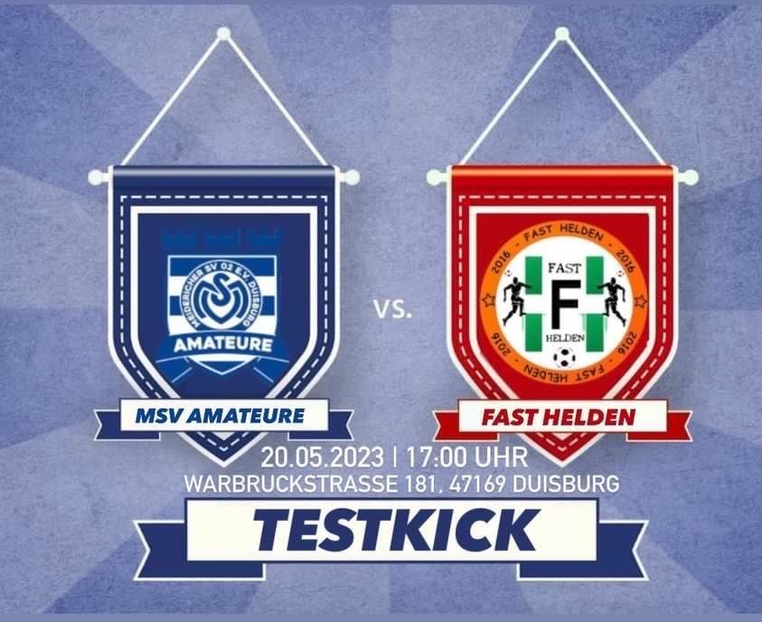Am 20.05.2023 spielen wir um 17:00 einen Testkick gegen die @fasthelden, die Mannschaft die Anfang des Jahres einer unserer ersten Gegner war und wo wir aufgrund des Ergebnisses noch Wiedergutmachung betreiben müssen :)