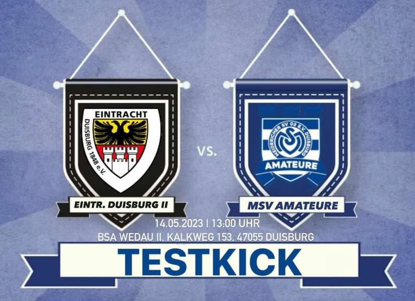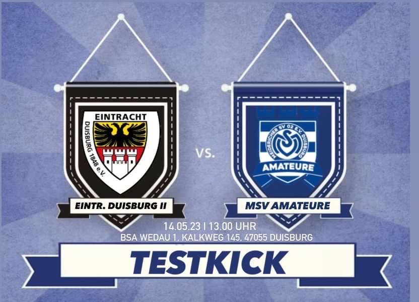 Am 14.05.2023 um 13:00 Uhr findet unser nächstes Testspiel gegen Eintracht Duisburg II auf der Bezirkssportanlage Wedau II, Kalkweg 153, 47055 Duisburg statt.