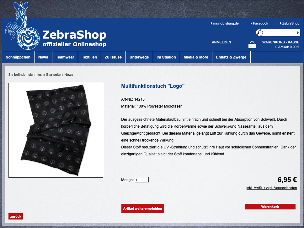 www.msv-zebrashop.deAusverkauft. Wir sagen ja gerne "Dat isset!", aber in diesem Fall: "Dat war´s noch nich!" Zwei komplette Ladungen MSV-Masken sind an das Zebra gebracht worden. Mit der dritten Fuhre rechnen wir Anfang Juni. Bleibt gesund!