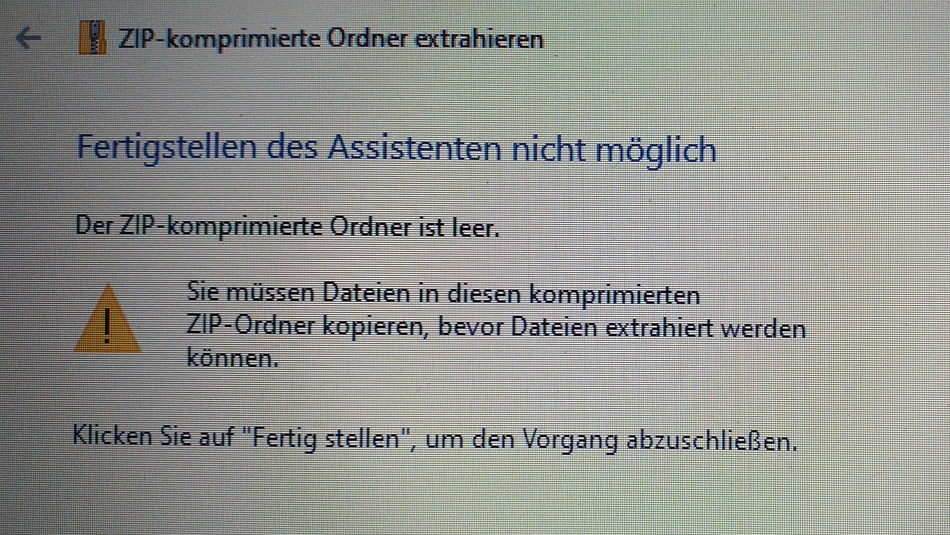 Ich hab da ein Problem mit meinem TV, bzw der Software des TV. TV bleibt ab und an der Ton weg. Nun wollte ich mir eine aktuelle Software runter laden, jedoch bekomme ich beim extrahieren immer die Fehlermeldung, das der Ordner leer sei, obwohl im Ordner 268 MB sein sollen.