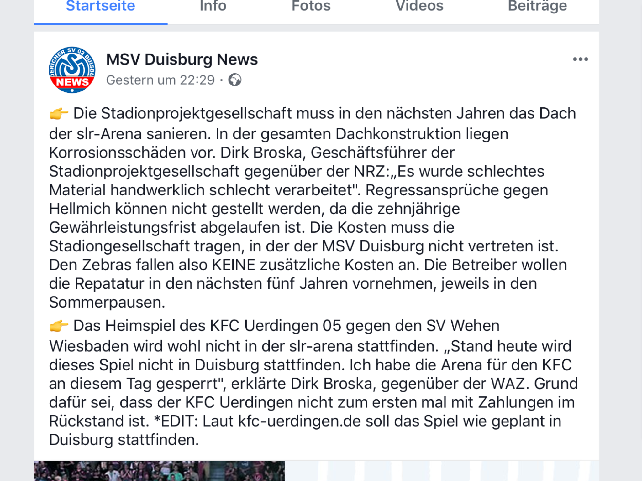 Was ist aus den 1,4% der Stadionprojektgesellschaftsanteile geworden, die der MSV im Sommer 2017 noch hielt?Hier mal ein Artikel auf Facebook.....Anhang anzeigen 16384