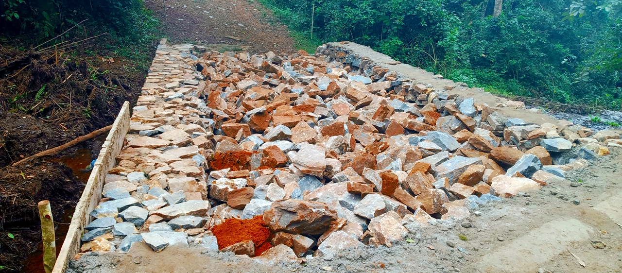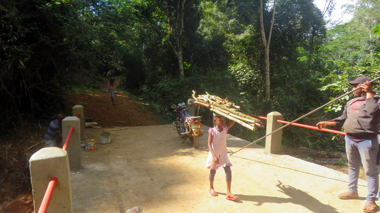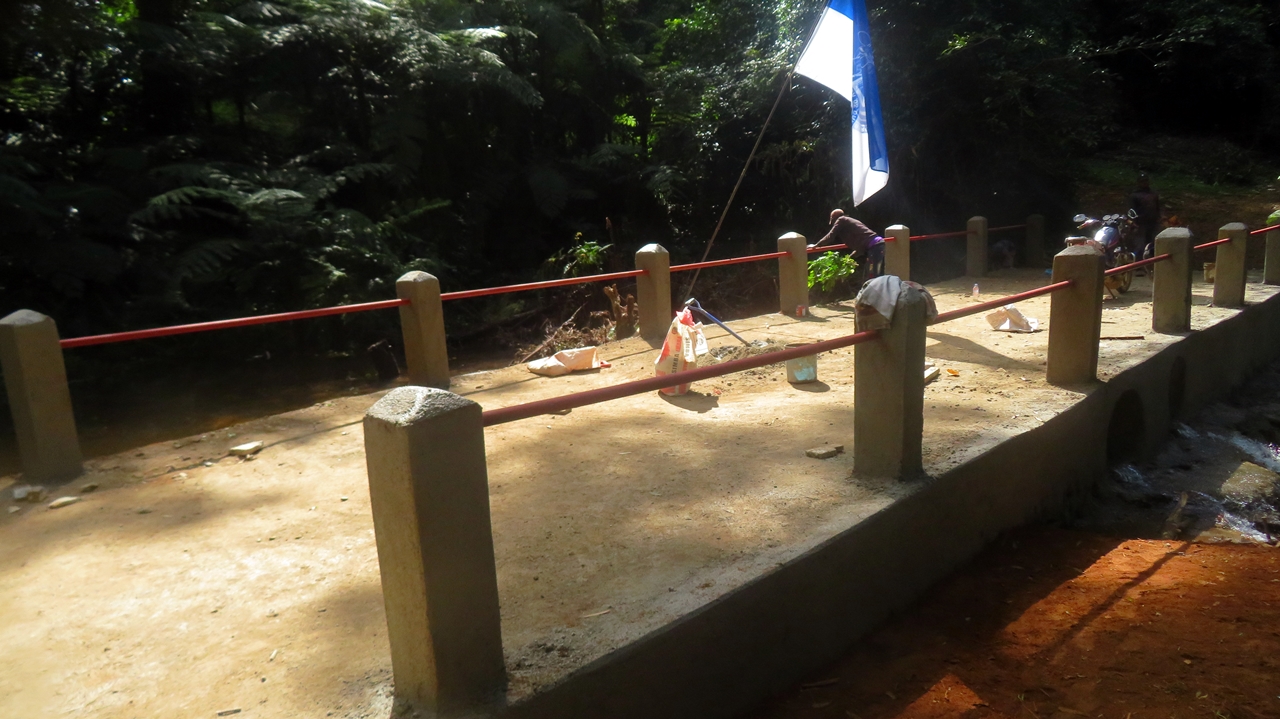 Zu diesem Zweck war ein Bauingenieur vor Ort, der die Topografie, den Bach und die Regenmengen in der großen Regenzeit kennt und der das berechnet hat (siehe erstes Bild vor dem Brückenbau). Da geht schon ´ne ordentliche Menge Wasser durch die beiden Röhren.
